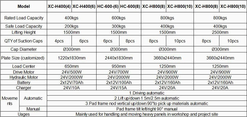 The CATHAYLIFT electric sheet suction cup car is easy to operate. The vacuum suction cup feeding device of the small mobile lifting glass truck can realize the vacuum processing of iron plates, steel plates, aluminum plates, stainless steel and other metal plates. The suction cup attaches itself to the metal plate by a vacuum generated by an electric vacuum pump. The vacuum creates a very strong connection between the suction cup and the metal plate. Tilt, swivel and move it to any desired position. Non-destructive heavy-duty handling Vacuum accumulator and sound prompt device, with excellent workability and process reliability Suction cup and beam position can be adjusted to facilitate adsorption of different sizes of plates Adopt energy-saving control of the vacuum generator, reducing operating costs. CATHAYLIFT-XC This model can continuously rotate 360°, electric suction and deflation, suitable for large-scale glass handling in workshops and heavy-duty installation of outdoor glass and windows. It is able to adjust right/left and horizontally.